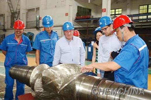 (圖為克勞斯瑪菲集團(tuán)專家在益陽(yáng)橡機(jī)生產(chǎn)現(xiàn)場(chǎng)了解密煉機(jī)轉(zhuǎn)子生產(chǎn)加工情況)