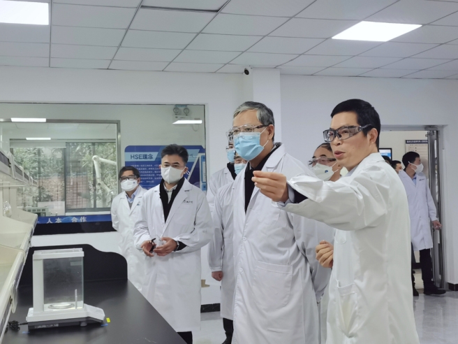 2月8-10日,李凡榮一行赴中化藍(lán)天調(diào)研,先后考察中化藍(lán)天上虞基地、浙化院、浙江新能源和中化藍(lán)天總部,深入生產(chǎn)車間、工程建設(shè)現(xiàn)場、重點(diǎn)實(shí)驗(yàn)室、營銷中心等生產(chǎn)、研發(fā)和市場一線,了解生產(chǎn)運(yùn)營、工藝技術(shù)、安全管理、研發(fā)創(chuàng)新、市場開發(fā)等情況,并看望慰問一線干部員工。