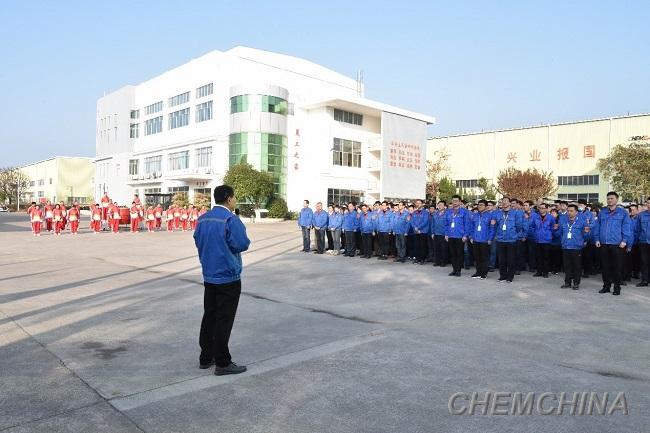 節(jié)后第一個工作日,坐落于福建三明沙縣金沙工業(yè)園的福建天華公司內(nèi)鑼鼓喧天,鞭炮齊鳴。每年一度的節(jié)后返工日,領(lǐng)導(dǎo)班子按照傳統(tǒng),列隊在公司大門口迎接員工上班。隨后舉行升旗儀式,吹響了節(jié)后復(fù)工的“集結(jié)號”。