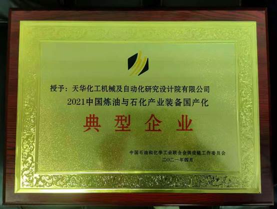 在中國石油和化工聯(lián)合會、京博控股集團近期聯(lián)合組織的石油和化工產(chǎn)業(yè)大會上,天華院被授予“2021中國煉油與石化產(chǎn)業(yè)裝備國產(chǎn)化典型企業(yè)”。